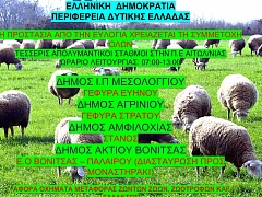 Σε σύσκεψη για την ευλογιά των αιγοπροβάτων καλεί η Ομοσπονδία Αγροτικών Συλλόγων (ΟΑΣ) Αιτωλοακαρνανίας, στη διασταύρωση της Μπούκας, Η ανακοίνωση: Η Ομοσπονδία Αγροτικών Συλλόγων Αιτωλοακαρνανίας καλεί όλους τους κτηνοτρόφους και αγρότες της περιοχής να συμμετέχουν στη σύσκεψη για την ευλογιά τη Δευτέρα 27 Οκτώβρη, στις 8:00 μμ, στην ταβέρνα “ΙΚΑΡΟΣ”, στη διασταύρωση της Μπούκας. Θα μιλήσουν ο…