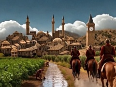 Αναπαράσταση με τεχνητή νοημοσύνη του Βραχωρίου κατά την Οθωμανική περίοδο. Βασίστηκε στις μαρτυρίες του Εβλιά Τσελεμπί σχετικά με τις καλλιέργιες που υπήρχαν στην πόλη όπως καπνός και ελαιόδεντρα (λιοστάσια), τις αναφορές για Οθωμανικά κτίρια όπως πυργόσπιτα, ο πύργος ρολόι, τα τζαμιά και το Οθωμανικό διοικήτηριο, το παζάρι (σημερινή πλατεία Στράτου) κ.α. Για τη χριστιανική κοινότητα σημείο…